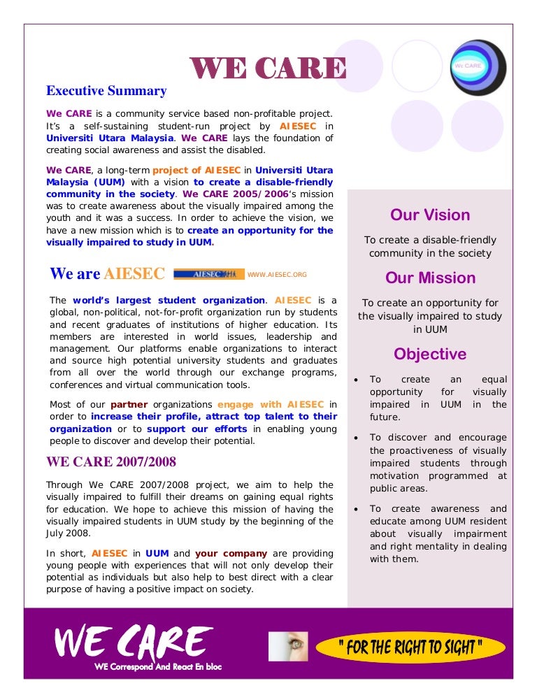 Sponsorship Proposal For We Care 08